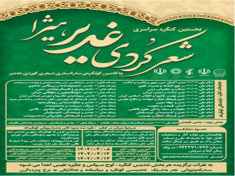 به گزارش خبرگزاری تابناک کرمانشاه، پوستر جشنواره سراسری شعر کردی غدیر با حضور مدیرکل و معاونین فرهنگ و ارشاد اسلامی استان کرمانشاه رو نمایی شد.
